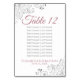 Make your wedding reception beautiful with these table number cards. They feature a simple yet elegant design with dusty rose or mauve pink & Grey text on a white background with lacy silver grey faux foil curls and swirls in the corners. These cards include seating assignments so your guests will have an easy time finding the right table.