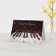 Red rose petals on old piano keys for couple's 70th wedding anniversary.