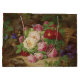 A beautiful print of “Rose Piece at the Forest Floor with Butterflies, Basket and Blue Ribbon” a painting created by German painter Josef Lauer (1818-1881).