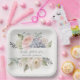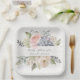 BABY SHOWER DECOR, PAPER PLATES | This elegant, feminine cottagecore baby shower invitation features a white wild rose with a peach and lavender antique English rose, baby's breath, a tiny blue butterflies. There is a complete product collection available to coordinate: MSP0104