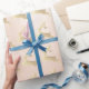 Holidays Modern Wrap decorated with a face of golden reindeer.