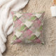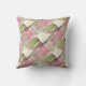 5 star quality pillow featuring eye-catching modern, abstract, design in shades of rose pink, green, & white with a touch of grey.
