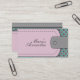 Pale rose pink leather look and pattern grey, teal modern accessories business card template featuring one pale rose pink band with seams and one grey with a button in leather style-not real leather just a PRINTED image and a geometric pattern in grey and teal. This modern yet with a retro flair business card template is fully customisable.