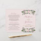 Our vintage boho floral wedding ceremony programs feature a moody floral arrangement of romantic roses, peony and anemone flowers, greenery, and rustic bohemian feather accents in rich shades of dusty rose, mauve pink, cassis, creamy white, moss green, gray, and gold on a pale rosy pink background color. A dramatic and dreamy color scheme for your fall or winter wedding. Personalize the beautiful custom monogram, wedding party, wedding ceremony, and thank you text for your elegant rustic wedding day. Please note, these sheet programs arrive flat and require a fold down the center.