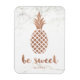 This stylish magnet features a faux rose gold look (not actual gold foil) on a white marble look background. A pineapple is featured along with the words "be sweet" in trendy typography, and has a spot for your name.