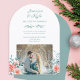 Rose-pink and light green wedding invitation, beautiful for a winter wedding. These winter photo wedding invitations are versatile for winter green, mauve, blush, or rose-pink colour palettes. Light green eucalyptus and pink roses are painted in watercolor for an elegant winter design.