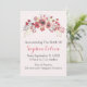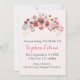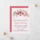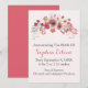 A feminine floral watercolor baby girl birth announcement with elegant typography. The name of the baby girl is set in rose pink that accents the colours in the floral swag at the top of the design. The rest of the elegant text is set in black. The back is set in rose pink to add a splash colour to the design.