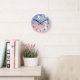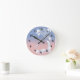 Let the decorator in you come out! Wall clocks are an inexpensive and beautiful addition to any room. This pretty clock uses the on-trend colours of rose quartz and serenity blue, with a white flower accent. \