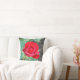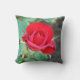 Vibrant red rose decorates comfy throw pillow. Lovely floral style for home or office decor.