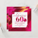 Stunning 60th wedding anniversary invitation with modern elegant typography. The pink and red contemporary background is a swirl from the lovely flower on the card. I took a photo of this cute flower in Switzerland. I used it to make the one-of-a-kind script celebrating 60. Add the name of the wedding couple or anniversary pair. Add the date below. This invitaion is part of a beautiful collection for a wedding anniversary party. The collection will make a lovely table and decoration and favours. On the back of the invitation is a block of text where you can enter additional details for the party.