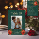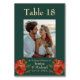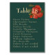 Flipping to the reverse side, the same captivating bottle green background continues. The main focus is a list of guests seated at that specific table, offering a practical guide for attendees. Design elements maintain continuity on both sides, providing a visually pleasing and meaningful keepsake for the guests.