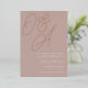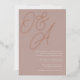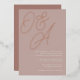A beautiful typography based monogram wedding invitation featuring your initials in oversized rose gold foil script lettering at the top, in tone on tone shades for a watermark effect. Personalize with your wedding details in classic serif lettering aligned at the lower right. Our Rose Taupe colorway is an elegant mix of earthy neutral pinks, featuring warm white and classic white lettering on a rosy taupe background.