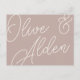 Designed to match our Script Watermark wedding invitations, this elegant typography based RSVP postcard is perfect for traditional mail-in RSVPs. Design features oversized script lettering at the top, in tone on tone shades for a watermark effect. Personalise with your desired RSVP date and custom accept and decline wording in classic serif lettering aligned at the lower right. Our Rose Taupe colorway is an elegant mix of earthy neutral pinks, featuring warm white and classic white lettering on a rosy taupe background.