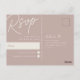 Designed to match our Script Watermark wedding invitations, this elegant typography based RSVP postcard is perfect for traditional mail-in RSVPs. Design features oversized script lettering at the top, in tone on tone shades for a watermark effect. Personalise with your desired RSVP date and custom accept and decline wording in classic serif lettering. Our Rose Taupe colorway is an elegant mix of earthy neutral pinks, featuring warm white and classic white lettering on a rosy taupe background.