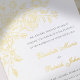 The crisp white background paired with luminous foil detailing creates a polished, stately presentation that feels romantic yet composed. Graceful roses and classic typography give this invitation an elevated, heirloom quality suited to formal wedding traditions and sophisticated venues.