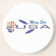 Personalised sandstone, round coaster features a rose motif of the flag of the United States of America. It shows on its side, across the coaster. The flower shows stars and stripes and red and white stripes. The stem reads USA in blue and white stars. The leaves are blue with white stars. The flower shows horizontally with a place for a name, in blue letters, slightly above the stem. Thoughtful housewarming gift. Perfect for celebrating Independence Day. Fun to use at family reunions, clubs and travel groups. Fun for parties or special events.