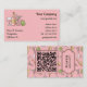 Rose wine composition. Bottle, glass, corkscrew and grapes. Custom background colour. Many customisable text fields at front side. Seamless pattern, social ID icons and QR code at the back side.