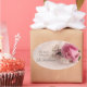 Pretty pink rose with white jasmine on a delicate pale fabric