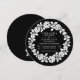Rose wreath black and white modern wedding invitation. A contemporary design that showcases a vintage white rose wreath on black background.