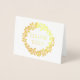 Gold foil rose wreath wedding Thank you photo note card. It features a rose reath made of real gold real leaf.