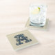 Rosemaling Monogram Prussian Blue Glass Coaster