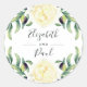 Seal your invitation envelopes or favours with these beautiful watercolor floral wedding stickers featuring watercolor yellow roses, olives and foliage. Your names are written in a mix of block and hand written calligraphy typeface.