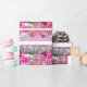 Dreamy mixed bouquet of roses and other various flowers in a pretty floral pattern with pink faux glitter accent along the bottom.