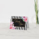 Stylish note card in a pretty pink floral design, with contrasting black and white stripe, and gold effect script.