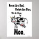 Roses Are Red, Violets Are Blue, This Is A Cow, Moo. This funny poster is the perfect decoration... It includes the poem above plus a fun cartoon illustration of a black and white cow. Fun, weird, and just the thing for those with a bit of a odd sense of humour and a love for bad poetry. Customise it! You can change the wording or change the background colour. Do what you like and make it yours!
