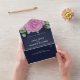 Watercolor roses navy blue in bloom All In One wedding invitation. Personalise text and colours to make this invitation just right for you. Reduce the amount of cards you need to send by customising and sending this all in one invitation, tear-away RSVP reply by date and choice of food.