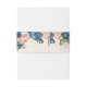 A bright, bold floral of roses in shades of dusty blue and peach is the focal point for many of the pieces of this wedding suite that also features elegant script text and modern design layouts. The custom belly band shown here has an upper border of roses and an oval label to hold your text. Easily enter your wedding date and initials using the provided template. Search ID584 to see all the matching pieces in this beautiful wedding set.