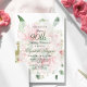 A floral rose bouquet birthday invitation featuring a green and pinks . White, greens and blush pinks are the colours in the design.
