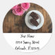 Roses & Chocolate Cake Address Classic Round Sticker... flowers, brownies, baking, party, shower, bridal, bride, fancy, cafe, bakery, baby girl, business or personal uses.