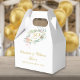 Elegant floral 50th golden wedding anniversary favour box featuring a pretty roses garland with personalised names and special date set in chic gold typography. You can also personalise with your own thank you message under the lid. A perfect way to say thank you to your guests! Designed by Thisisnotme©