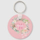 Pretty pink initial monogram keychain, featuring a beautiful white script name with a complimenting pink initial that is framed by a delicate watercolor floral rose garland on a peach pink background. Personalise to create a special keepsake gift to treasure! Designed by Thisisnotme©