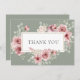 Roses Floral Sage Green Gold Geometric Thank You Card