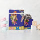 ROSES,FLOWERS,FEATHERS,ANGELS AND HEARTS IN BLUE WRAPPING PAPER