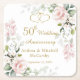 Roses Foliage Hearts 50th Wedding Anniversary Square Paper Coaster