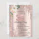 Roses Glitter Drips Rose Gold 35th Birthday Invitation