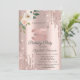 A modern, chic, and glamourous with rose gold glitter drips, and roses on a rose gold background.