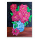 Original oil painting by artist, Susan Payne-Trutna of pink roses in a Chinese vase is featured on this note card.