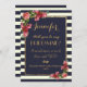 Roses Navy Stripes and Gold Bridesmaids Invitation