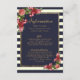 Roses Navy Stripes and Gold Wedding Information Enclosure Card
