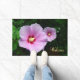 This custom doormat features an image of beautiful, large hibiscus blooms known as the Rose of Sharon. "Welcome" is added in large, easy-to-read lettering. The mat measures 24" x 36", and it has a smooth felt front & nonslip latex back. It also has a reinforced edge to resist fraying, is both fade & mildew resistant, and cleans easily with a spray of water. Ideal for covered entryways such as porches, apartments, offices, condos, etc. Feel free to contact me through Zazzle if you have questions about this mat or would like help transferring this design to a different item. I'm happy to help to ensure the image and lettering fit correctly.