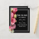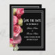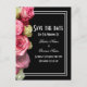 A plain simple pretty pink rose flower floral bouquet on a black background and white lined border traditional save the date design for summer garden white weddings to match your wedding stationery suite and other bridal essentials. This stylish elegant sophisticated wedding save the date, can be easily personalised with the bride and grooms names to the text templates to create your own unique feminine girly custom tying the knot save the date for your special marriage occasions, events and celebrations. Visit the PERSONALIZED_ WEDDINGS STORE for matching coordinated wedding sets. CUSTOMIZE to adjust the text and font.
