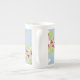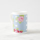 This Roses On Blue Bone China Mug features a digital art layering of Roses on a blue background with white polka dots for a cottage look.