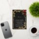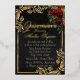 This elegant invitation is embellished with a floral bouquet of red roses and an elegant frame of gold leaves with a place holder for the young lady's photo on the back. "Quinceanera" and the girl's name are in foil. Designed to coordinate with the "Floral & Gold Leaves - Black & Pearl" Quinceanera Collection. To change details, click «Personalize». To move the text or change the text size, font, or color click «Click to customize further»