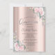 Roses,Silver Glitter Drips Rose Gold Quinceañera Invitation