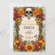 The colourful roses surrounding the invitation evoke the marigold flowers and other vibrant blooms traditionally associated with Día de Muertos, symbolising life, beauty, and the connection between the living and the departed. This floral frame, combined with the soft yellow background, creates a lively and inviting colour palette that perfectly reflects the joyous energy of the celebration.