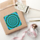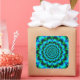 An abstract fractal image with an optically challenging rosette design in blue, green and turquoise, by Objowl.